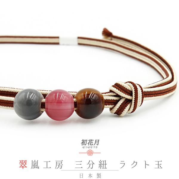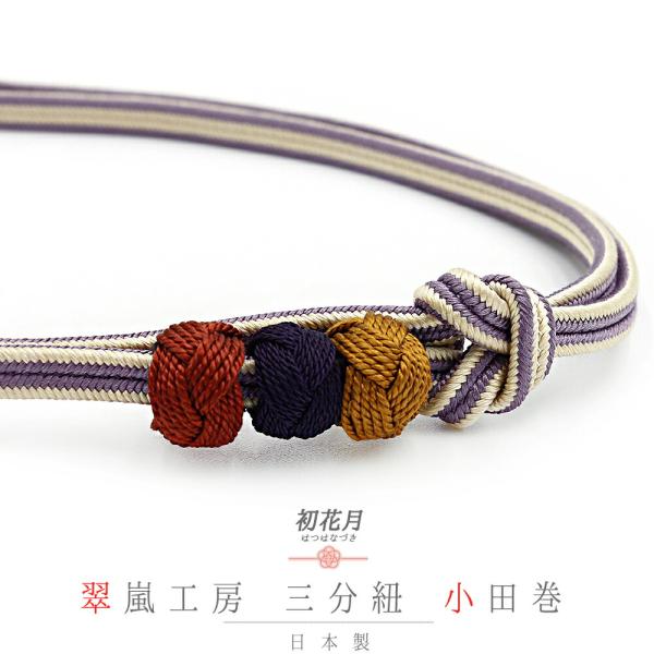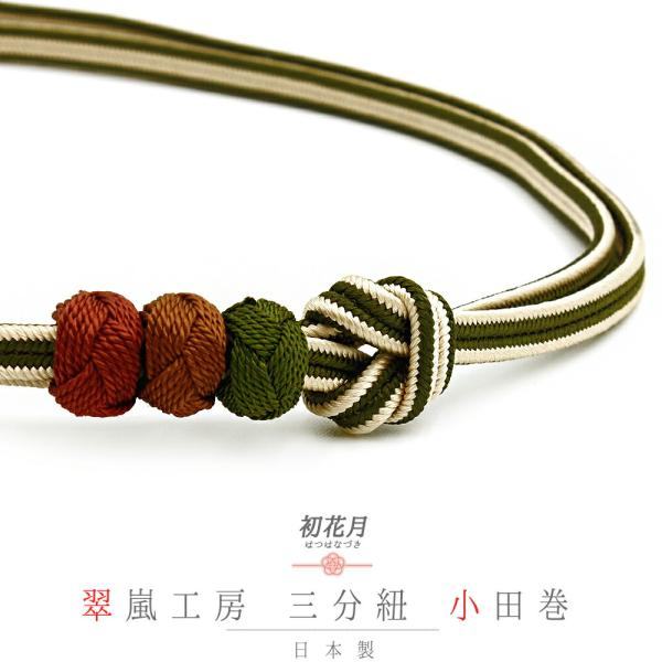 帯締め 三分紐 正絹 翠嵐工房 京すいらん 京冠 小田巻 濃緑 渋緑 抹茶 生成り ベージュ 赤茶 茶 緑 縞 ツートンカラー 日本製 No.10-5961