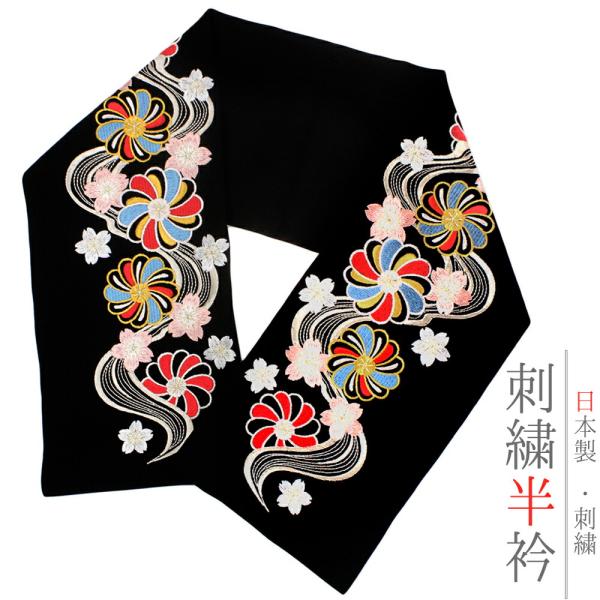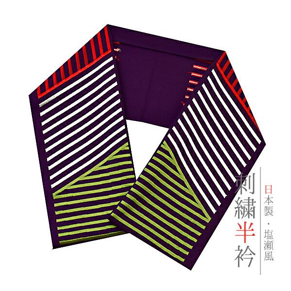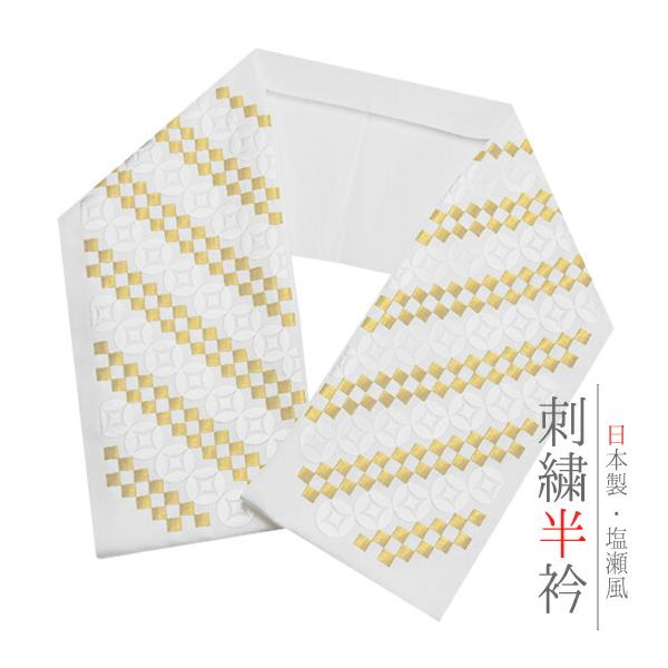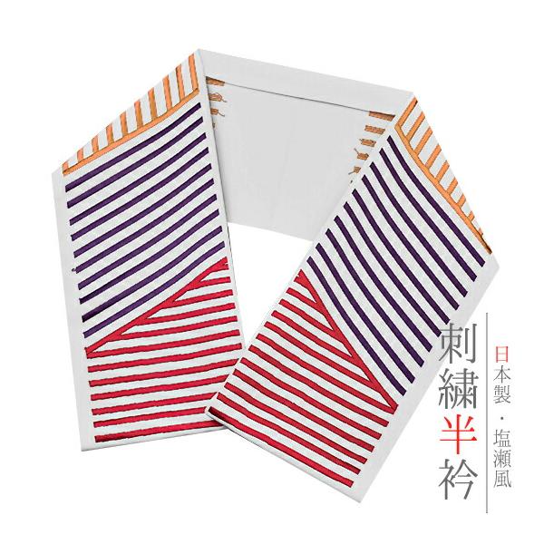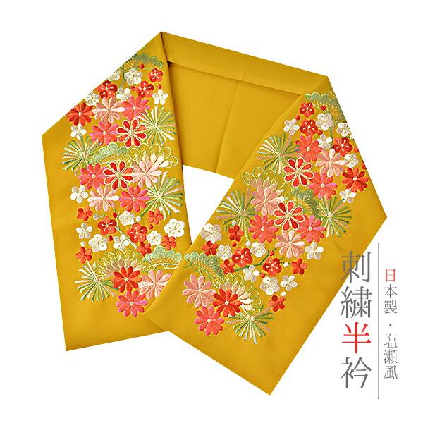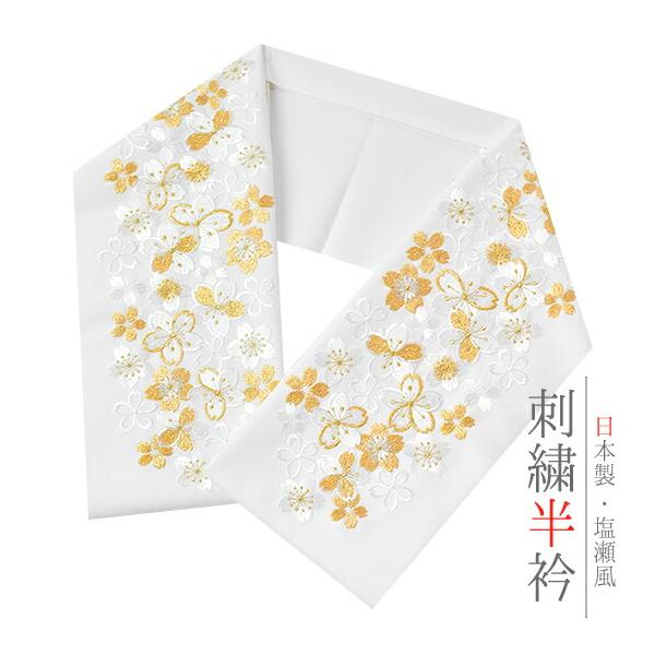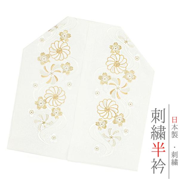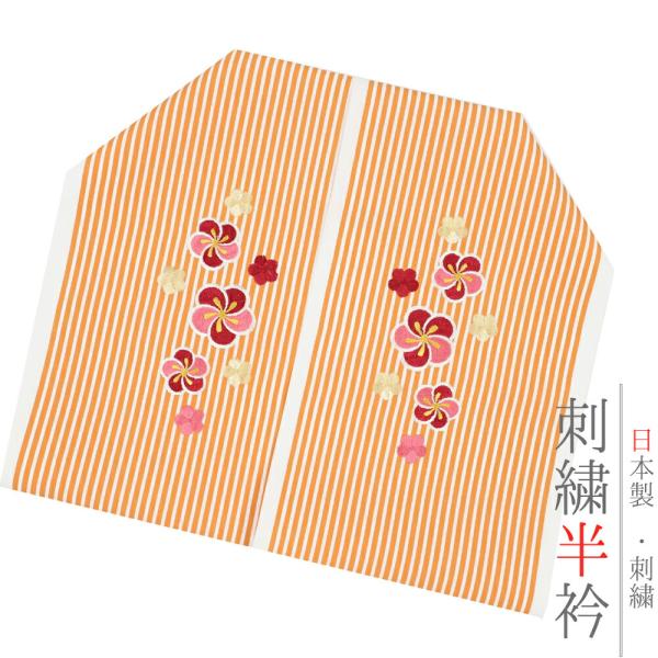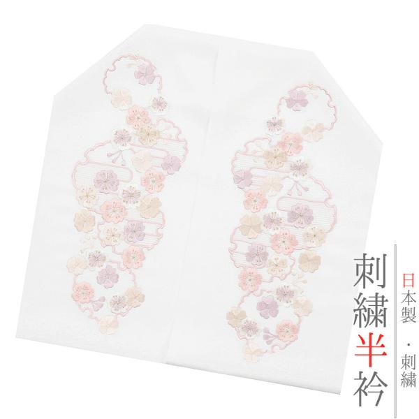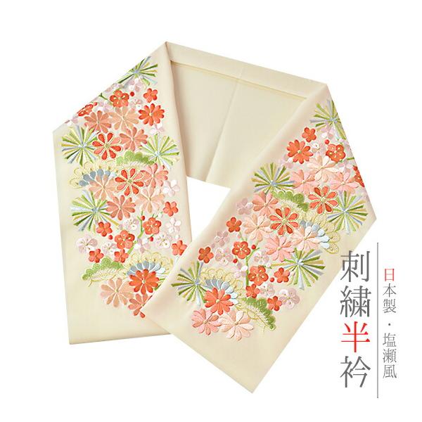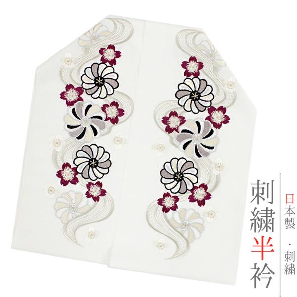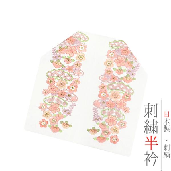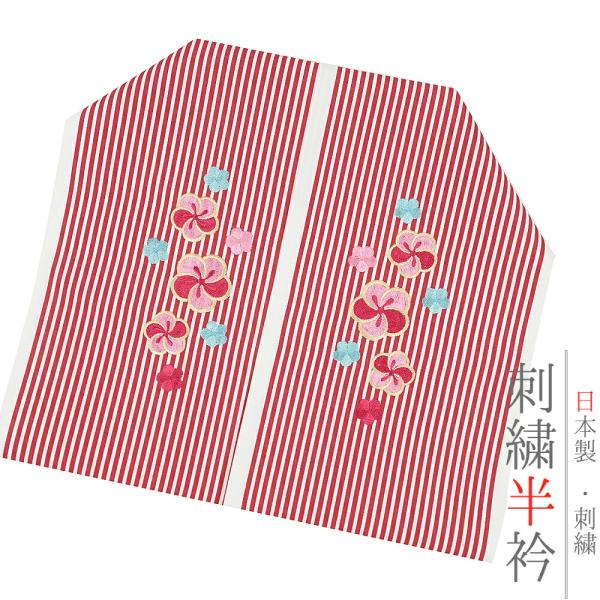 半衿 半襟 振袖 成人式 刺繍 白地 赤 鞠 毬 梅 ねじ梅 金糸 シルエリー Silelly おしゃれ 半衿 刺繍半衿 お洒落着用 成 No.10-0585