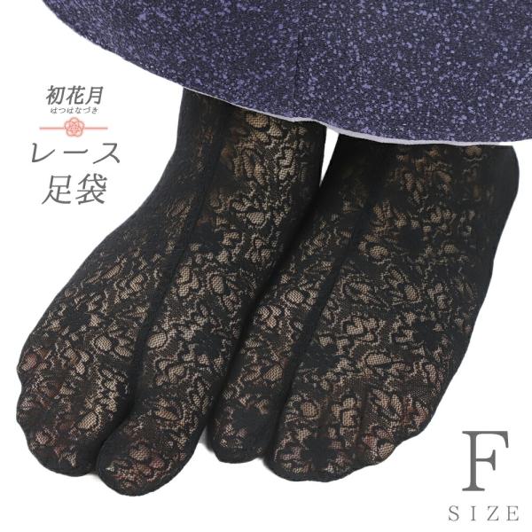 レース足袋 ストレッチ足袋 たび こはぜなし 留め具なし ソックスタイプ 足袋ソックス 黒 花柄 滑り止め付 レディース フリーサ No.10-6726