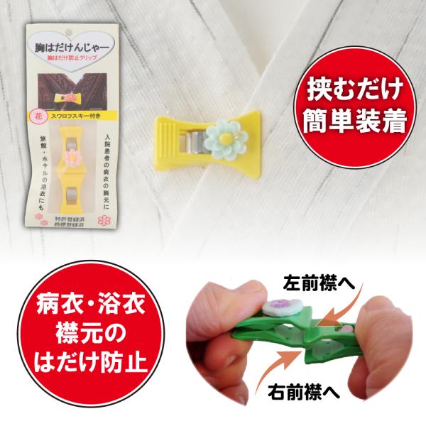 胸はだけんじゃー (衣類用クリップ 病衣 浴衣 などの襟元の はだけ防止) 送料¥250(2個まで)