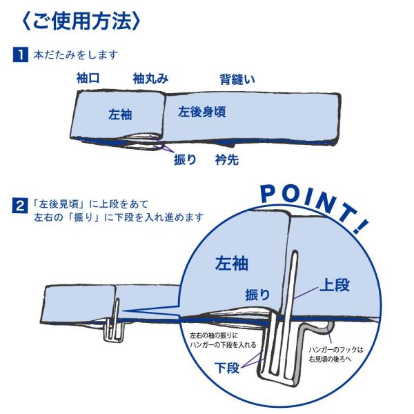 ・平置きで重ねるよりハンガーにかけることで圧力がかからず、自重で小じわが伸びる。