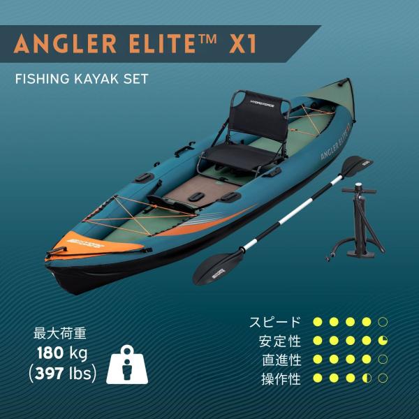 Bestway Hydro Force Angler Elite X1 フィッシングカヤック セット 1人用 釣り用カヤック 1人乗り 空気注入式 インフレータブル カヤック 3.80m × 99cm 65197