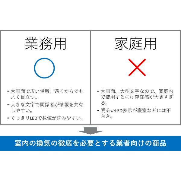 〇コロナ禍で室内喚起管理の必要がある業種の方向けの業務用・大画面CO2センサーです。