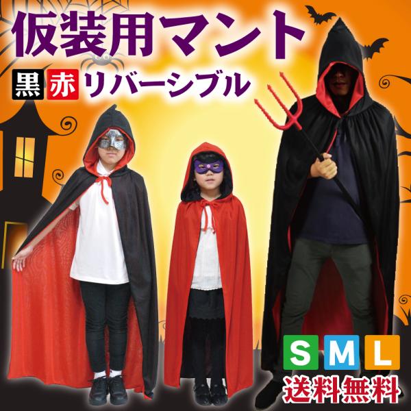 マント コスチューム 衣装 ハロウィン コスプレ 仮装 黒 赤 リバーシブル 子供 親子