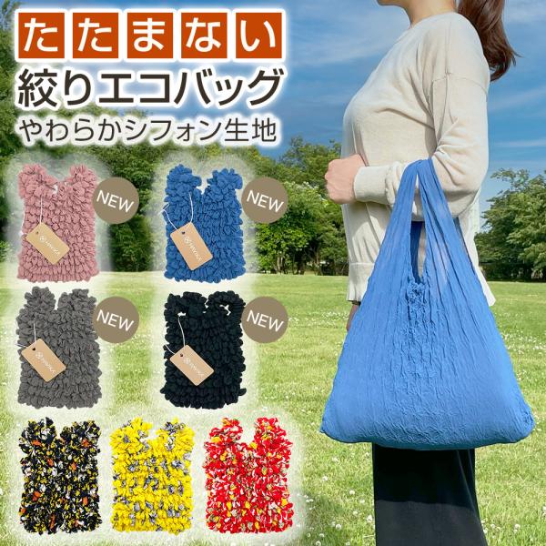 エコバッグ しぼり 柄 パターン ドロール バッグ 三浦 絞り 大容量 伸縮 たたまない クシュクシュ レギュラーサイズ