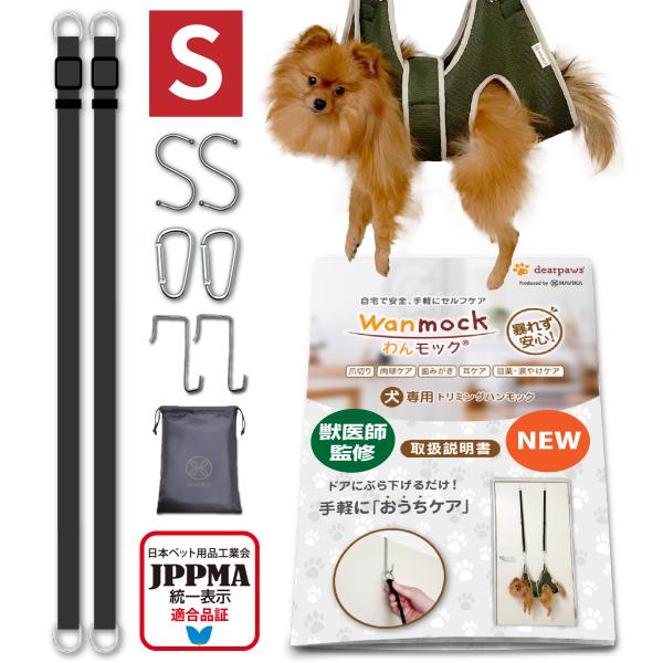 獣医師監修 わんモック Sサイズ 爪切り ハンモック トリミング JPPMAマーク取得済 暴れない 足裏バリカン 肉球 介護 ハーネス 補助具 ドア吊り 超小型犬 小型犬