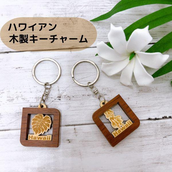 ハワイアンキーホルダー木製 キーチャーム ハワイアン雑貨 フラダンサー モンステラ ウッド ギフト オシャレ Hawaii ハワイ アロハ レオレア