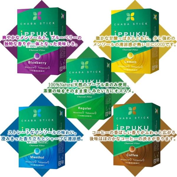 茶葉スティック ニコチンゼロ 禁煙 iPPUKU たばこ代用 10箱セット 5フレーバー レギュラー メンソール ブルーベリー レモン コーヒー アイスメンソール