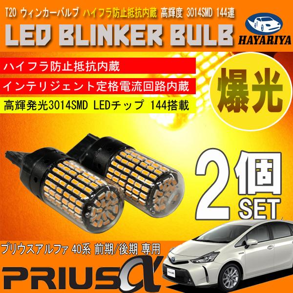 プリウス α 40系 前期 後期 T20 LED ウィンカーバルブ 2個セット 3014SMD 144連 爆光 ハイフラ防止抵抗内蔵 爆買
