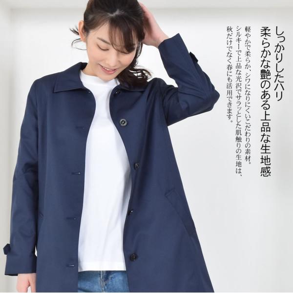 ベーシックなステンカラーは、大人のコーデに欠かせない一着です。軽やかで柔らか、シワになりにくいこだわりの素材。花粉が生地表面につきにくい特殊加工を施した生地で仕立て、室内への花粉の持ち込みを防ぐと同時に弱撥水・防汚加工で急な雨でも水滴をはじき、天候の変化に左右されず、様々なシーンで活躍してくれます。ストンと落ちるシルエットやミドル丈でパンツにもスカートにも合わせやすく、サッと羽織るだけでサマ見えの旬アウターに。