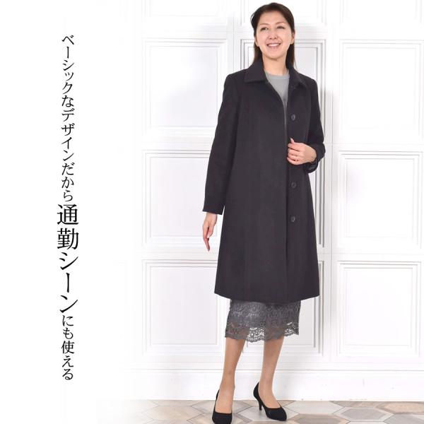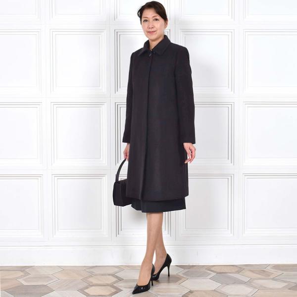 コート レディース ウール 100% ステンカラー ブラックフォーマル 葬式 女性 礼服 フォーマル 法事 冠婚葬祭 通勤 入学式 卒業式 (wo2580)