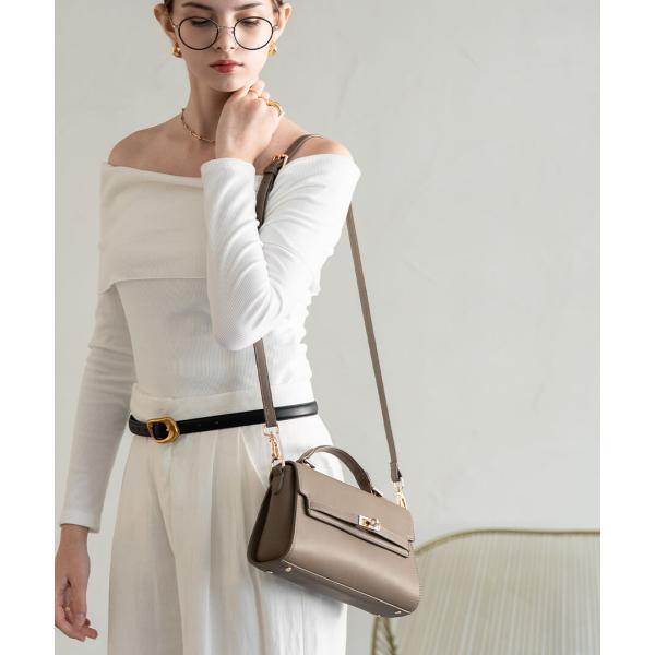 本革ショルダーベルトと華奢なチェーンが付属します。チェーンで華やかさをプラス。カジュアル感を演出したいときには本革ショルダーベルトが便利。