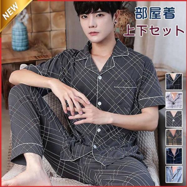 パジャマ メンズ 半袖 前開き 入院 寝巻き 家着 コットン 上下セット ルームウェア おそろい 父の日 部屋着 30代 40代 50代 60代