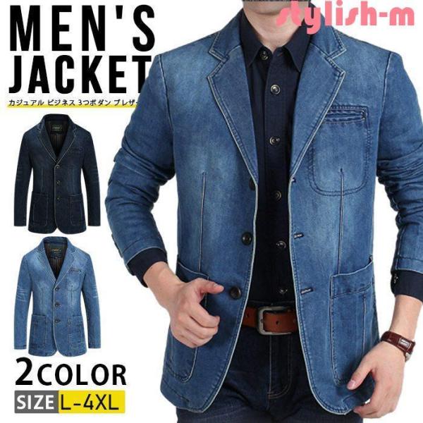 テーラード デニム ジャケット メンズ 秋 カジュアル ビジネス 3つボダン ブレザー テーラードジャケット ジーンズ