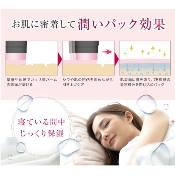 全世界で大ヒット「CIRMAGE」から、美容液でできたカッサプレート型バームがバージョンアップし、美容成分たっぷりで増量しました。塗った瞬間、お肌に密着して潤いパック!体温で溶けるバームから、天然由来のワックスと75種類の美容成分が溶け出し、シワを伸ばしながら膜をはります。その後、乾きながら形状をキープすることにより、お肌のハリをサポートします。この1本で、美容液・乳液・クリーム・アイクリーム・カッサ・マッサージオイル・フェイスマスク・化粧下地の8役。