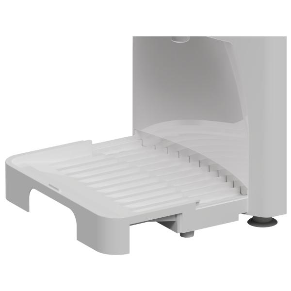 水受けトレーがスライド式で幅の調整ができるので、容器の大きさに関係なく容器を手で支えなくても給水ができます。