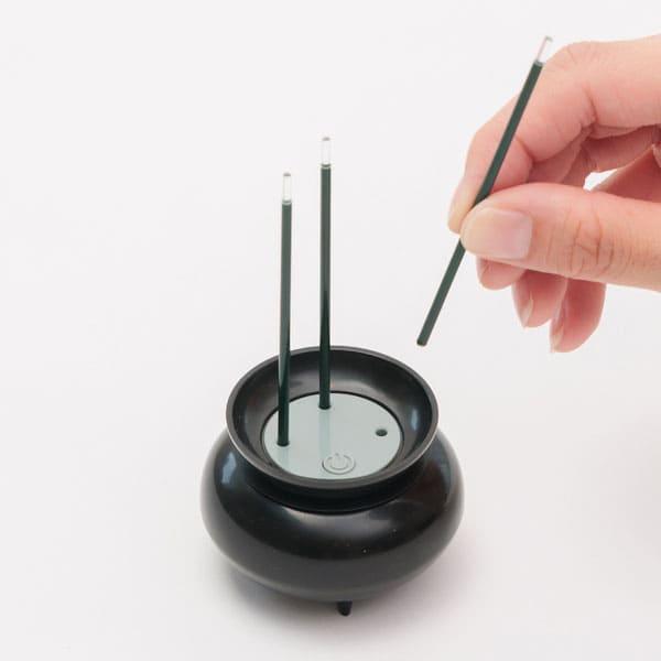 消し忘れの心配無し!火を使わないLED線香。約10分間の自動消灯機能付きで、一人暮らしのご家庭や、小さなお子様・ペットがいるご家庭に。ミニサイズで、コンパクトな仏壇・神棚にも。気になる煙も無し!線香の本数は調整可能。