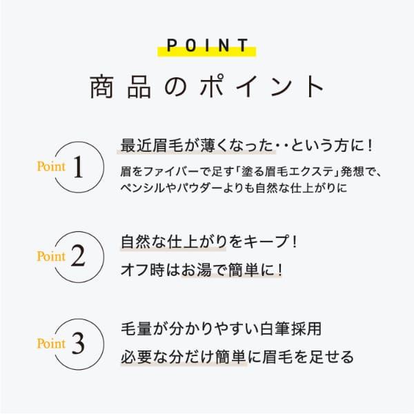 たっぷりのファイバーを直接、眉毛の足りない部分に塗るだけで、生えているかのような自然な眉毛に仕上げられます。