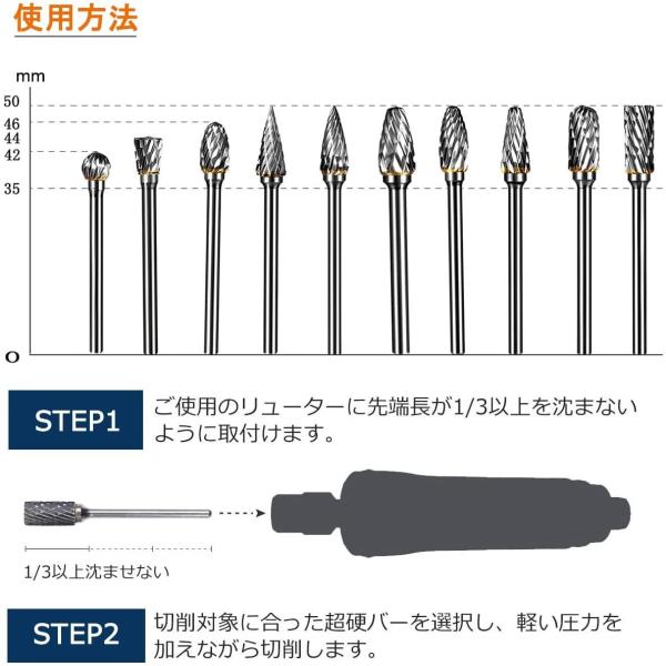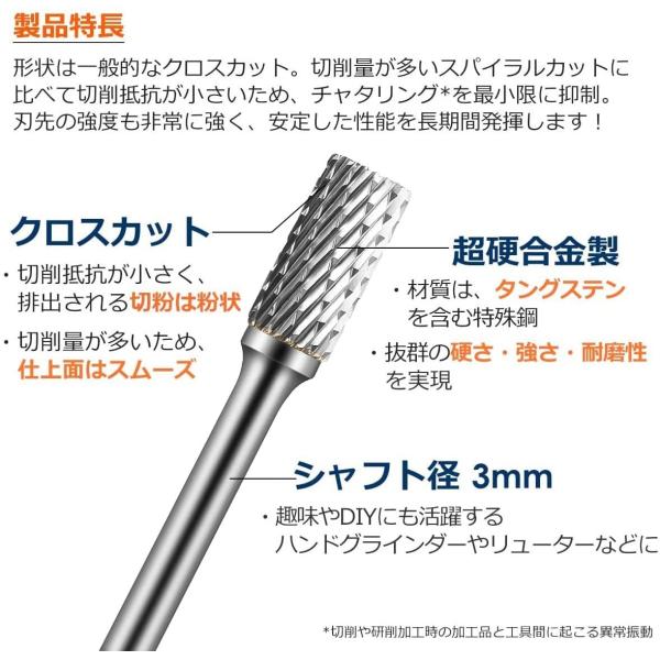 リューター ビット セット 3mm軸 10本セット 先端工具セット 超硬ビット ルータービット 超硬タングステンバー