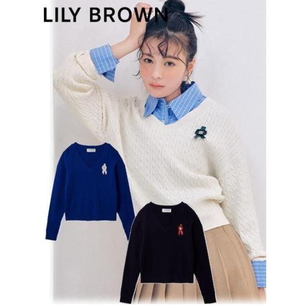 (期間限定10%OFF&300円OFF) Lily Brown / リリーブラウン Lily Bearスタンプモチーフケーブルニット 26春夏 LWNT261095