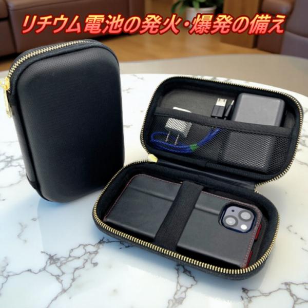 モバイルバッテリー収納ケース 保護ハードシェル 延焼抑制 耐衝撃 防水 防爆 発火・爆発事故から守る 防火素材と耐熱構造 保護バッグ 事故回避ガイド付 箱潰れ