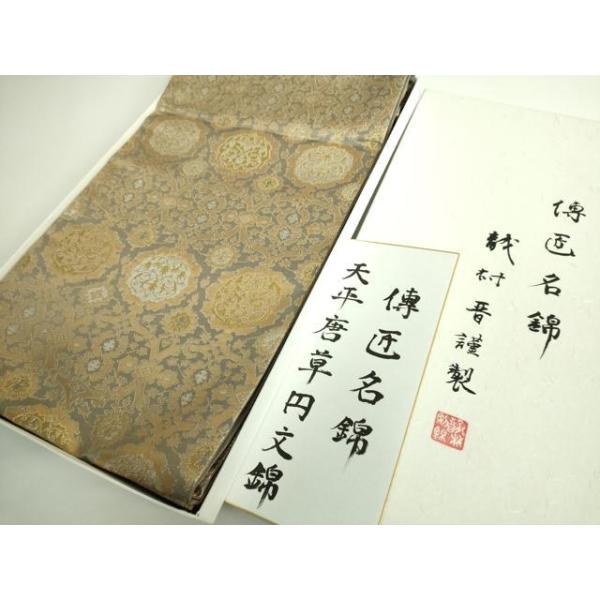 平和屋本店■極上 龍村晋謹製 全通柄袋帯 博匠名錦 天平唐草円文錦 金銀糸 色紙・たとう紙・共箱付き 逸品 DZAA9319kh5