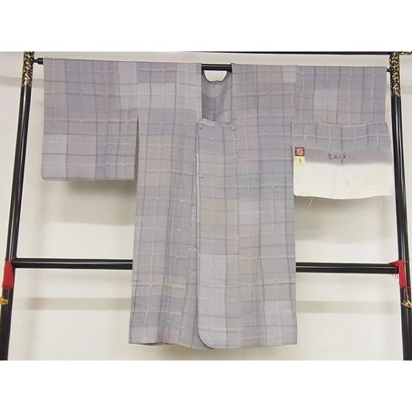 平和屋本店■極上 染色作家 斉藤三才 道行コート 単衣 格子 ロング丈 反端付き 正絹 逸品 KAAA1422kk4