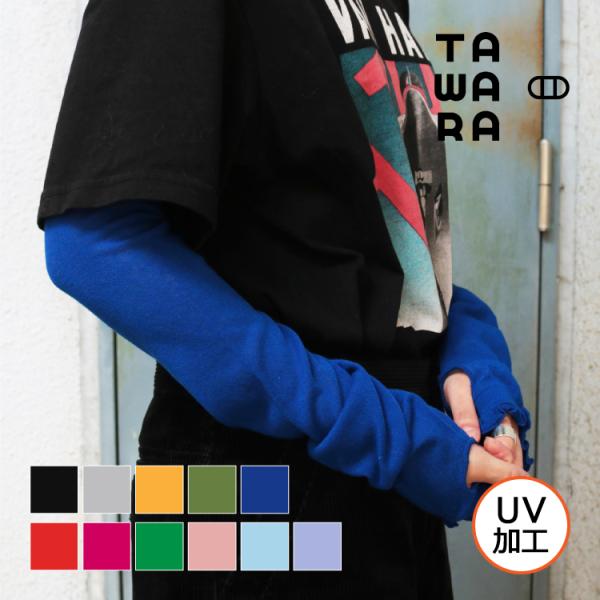 アームカバー UVカット TAWARA アームカバー フリルあり 全11色 指穴付き 長め ブライトカラー日焼け対策 紫外線 日よけ