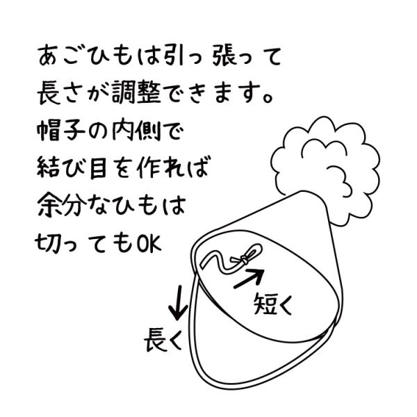 あごひもは程よく伸びて柔らかいMIXカラーのふわふわゴムです。