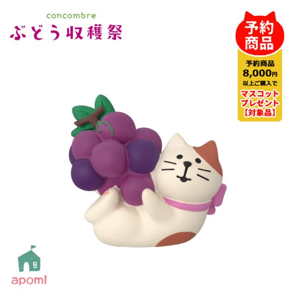 コンコンブル 新作 予約販売 6月下旬 ぶどう収穫祭 ぶどうケリケリ猫 夏 猫 ぶどう狩り ジュース デコレ マスコット DECOLE 置物 アポン