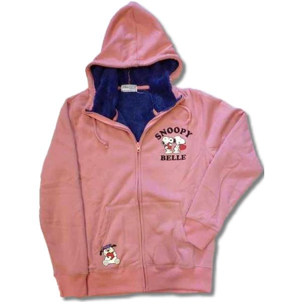 裏ボアのあったかスヌーピーパーカー/袖までボアたっぷり