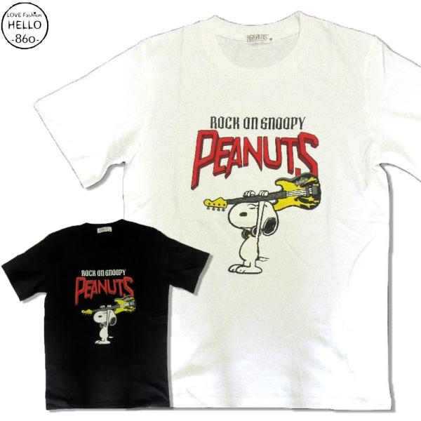 スヌーピー 半袖 Tシャツ メンズ 天竺 ロックンロール ギター 破壊 柄 キャラ 薄手 アメカジ /bia433
