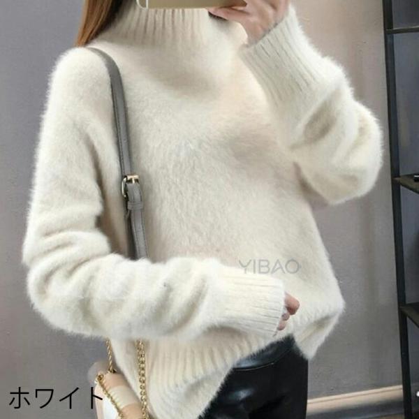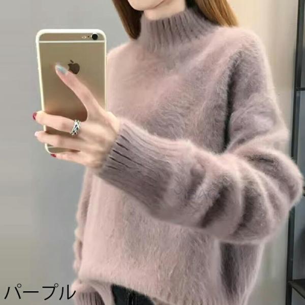 ニットセーター レディース ニットトップス ニット セーター プルオーバー タートルニット ニットソー 長袖 無地 綿混 ハイネック ふわふわ もこもこ シンプル おしゃれ 秋冬 ファッション 通勤