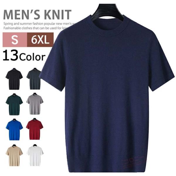 ニットTシャツ メンズ クルーネック 半袖 サマーニット メンズニット 無地 洗える カットソー カジュアル ビジネス オフィス トップス 春夏 秋