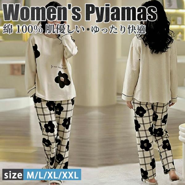 レディース パジャマ 綿 上下セット 長袖 春秋用 春夏用 薄手 ゆったり 花柄 チェック柄 ルームウェア 部屋着 母の日 ギフト