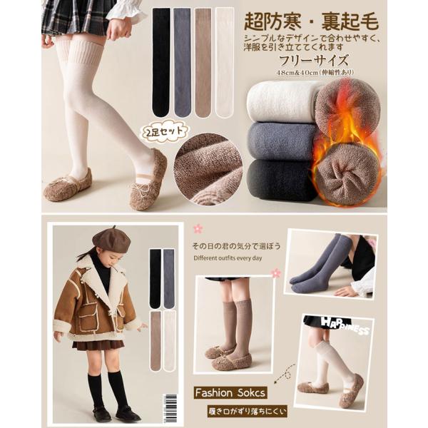 2足セット ニーハイソックス 女の子 暖かい キッズ 子供 裏起毛 ハイソックス 厚手 ソックス 膝上 あったか 冷え対策 靴下 小学生 中学生 高校生 無地 秋冬用