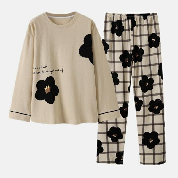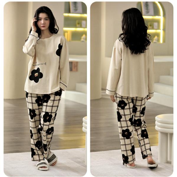 レディース パジャマ 綿 上下セット 長袖 春秋用 春夏用 薄手 ゆったり 花柄 チェック柄 ルームウェア 部屋着 母の日 ギフト
