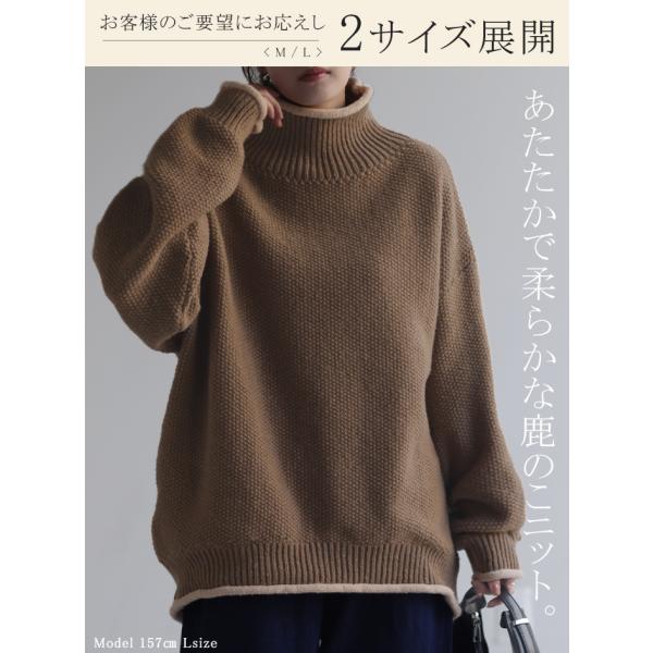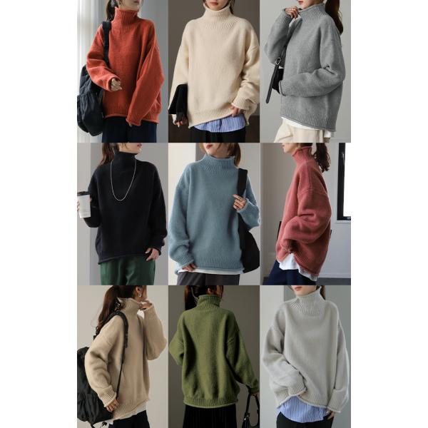 ニット レディース トップス セーター タートルネック タートル 長袖 ハイネック 肉厚 リブ 鹿のこ 無地