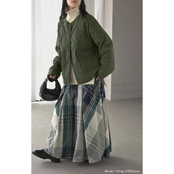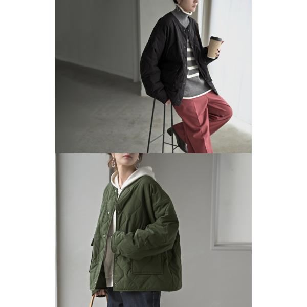 ジャケット 軽量 撥水 中綿 キルティング ジャスト丈 レディース アウター コート ブルゾン ミリタリー ノーカラー オーバーサイズ 大きいサイズ 体型カバー