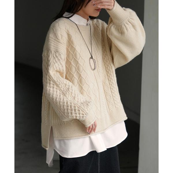 ニットセット シャツセット セットコーデ ローゲージニット ミックス編み ストライプ ストライプ柄 ボーダー柄 ボーダー柄シャツ 長袖 長袖シャツ ぽわん袖 パフスリーブ 温かい 暖かい 保温 微起毛 クルーネック 変形 アシンメトリー ホワイト オフホワイト アイボリー 生成り エクリュ ブラウン モカ 茶色 ブルー 青 ブラック 旬 トレンド プラスサイズ ビッグシルエット ビッグ ビッグサイズ オーバーサイズ 大きい 大きめ フリーサイズ フリー S M L LL 2L XL 3L XXL LLL カジュアル 着回し シンプル 大人 大人カジュアル オトナ 女性 綺麗 きれい キレイめ きれいめ 高見え 上質 上品 20代 30代 40代 50代 60代 おしゃれ お洒落 オシャレ 春 夏 秋 冬 春夏 秋冬 HUG.U HUGU ハグユー はぐゆー 着回し コーデ きれいめ 大きいサイズ 体型カバー お尻が隠れる