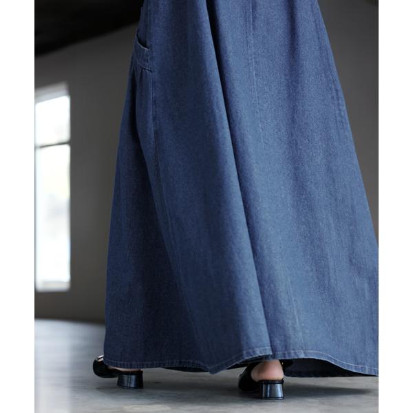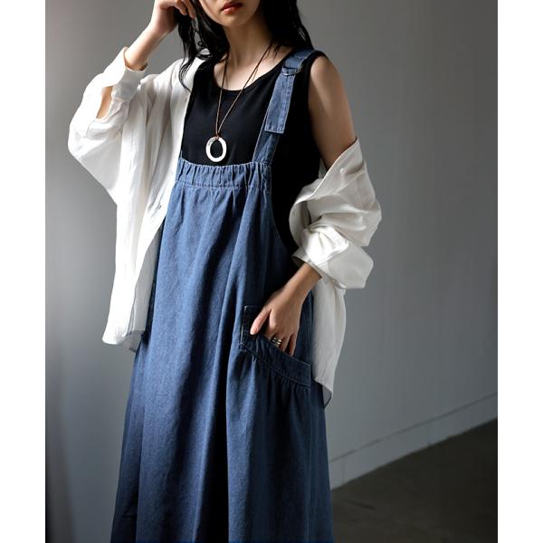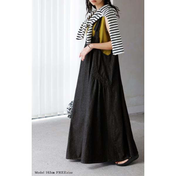 ジャンパースカート デニム ジャンスカ ワンピース レディース サロペット ノースリーブ オーバーオール 軽量 ロング フレア 体型カバー ギャザー 軽い 柔らかい