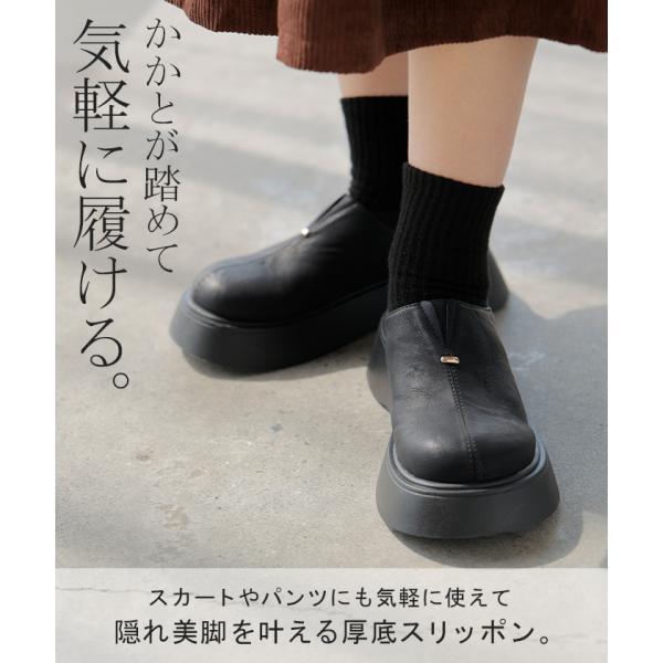 スリッポン 厚底 踵踏める 2way レディース 靴 厚底 シューズ 紐なし 歩きやすい 履きやすい サンダル ボリュームソール トラックソール くつ クツ 通勤 通学