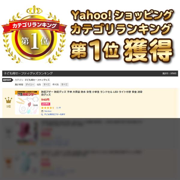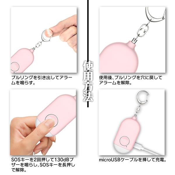 商品名:防犯ブザー 女性 小学生 充電 家用 大音量 防水 USB 子供 ランドセル 子ども キッズ LED ライト 女の子