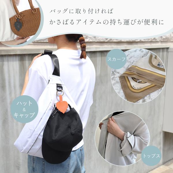 カラビナ付きで様々なバッグに対応しています。