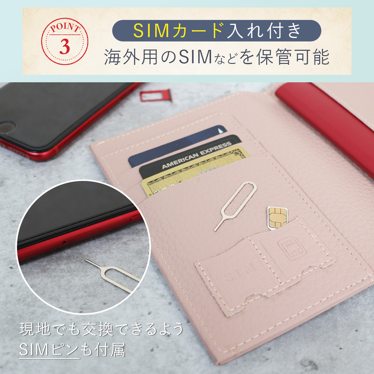 パスポートだけでなくカード類、お札、小銭、SIMカードまで収納可能です。
