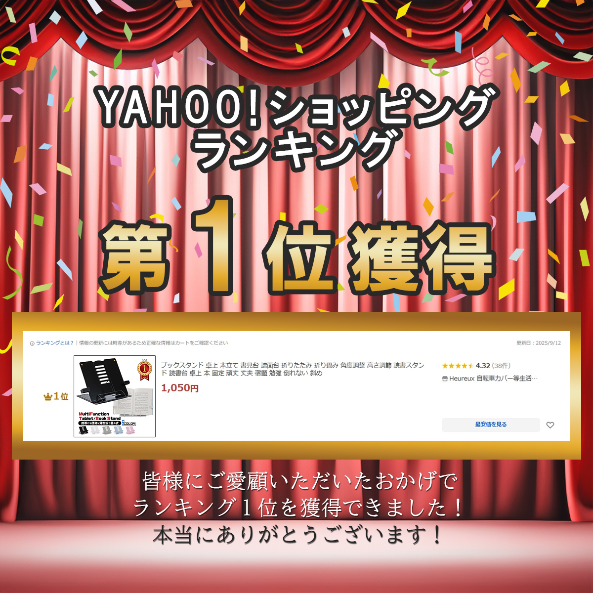 勉強や読書にピッタリの折り畳み式ブックスタンド。