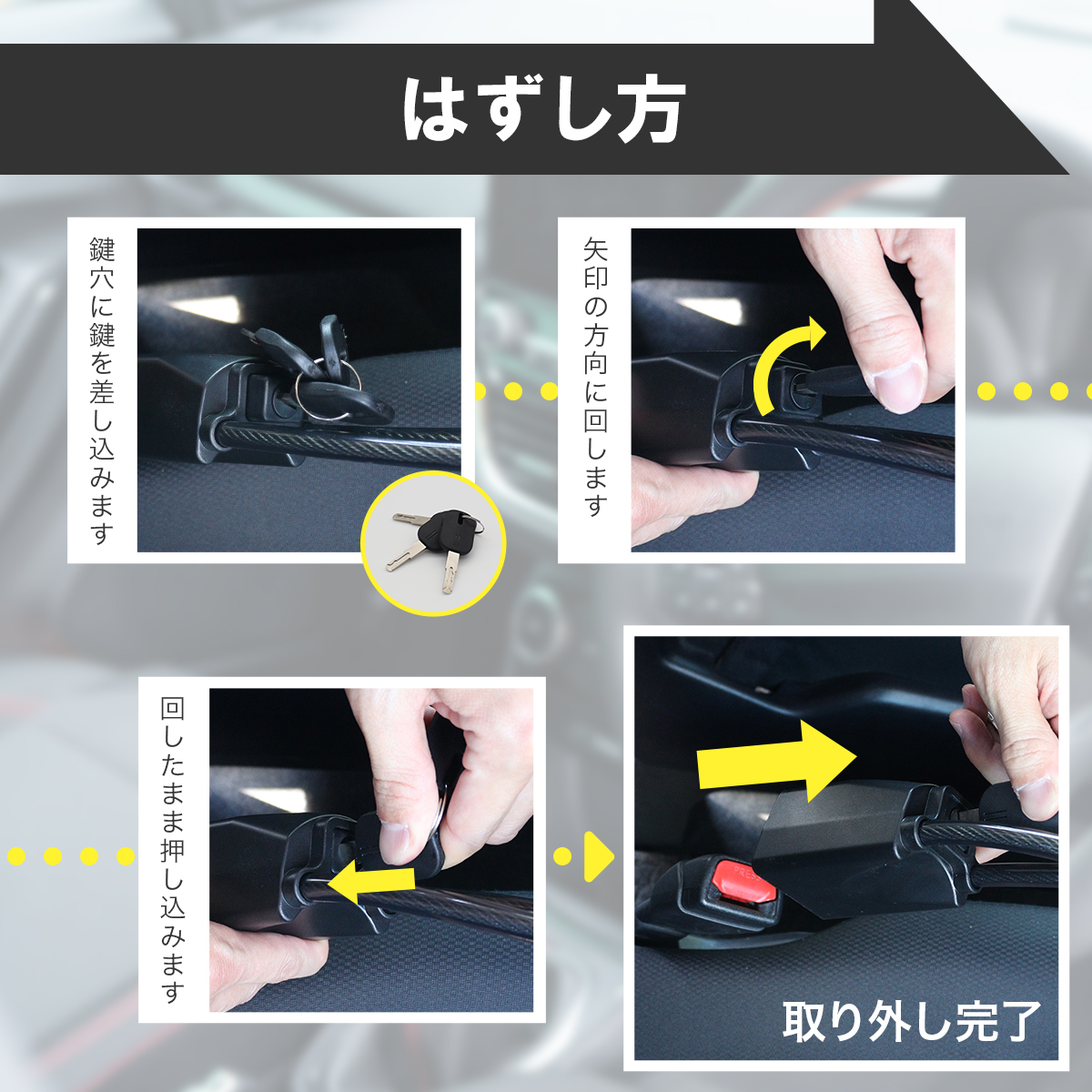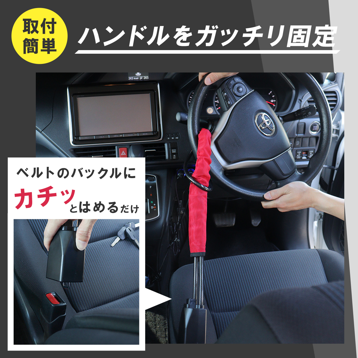 商品名:ハンドルロック 車 盗難防止 ワイヤー ステアリングロック 最強 防犯 鍵 固定 シートベルト カーセキュリティー