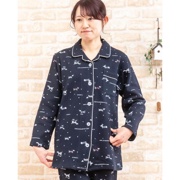 パジャマ レディース 冬 綿100%中わたニットキルト地 ワンちゃん柄 前開き 長袖 M/L ナイトウェア ルームウェア 入院準備 ペア ダルメシアン ダックスフンド