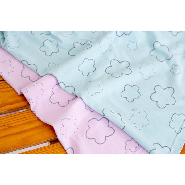 綿100%肌触りの良い やや薄い天竺ニット地になります。Tシャツなどで使われる柔らかいニット地なのでパジャマやベビー服など衣類向きの素材です。