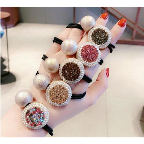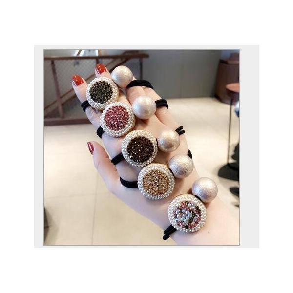ヘアゴム パールビーズとラインストーンぎっしりのラグジュアリーメタル2連ヘアゴム プチプラ かわいい レディース 丈夫 プレゼント